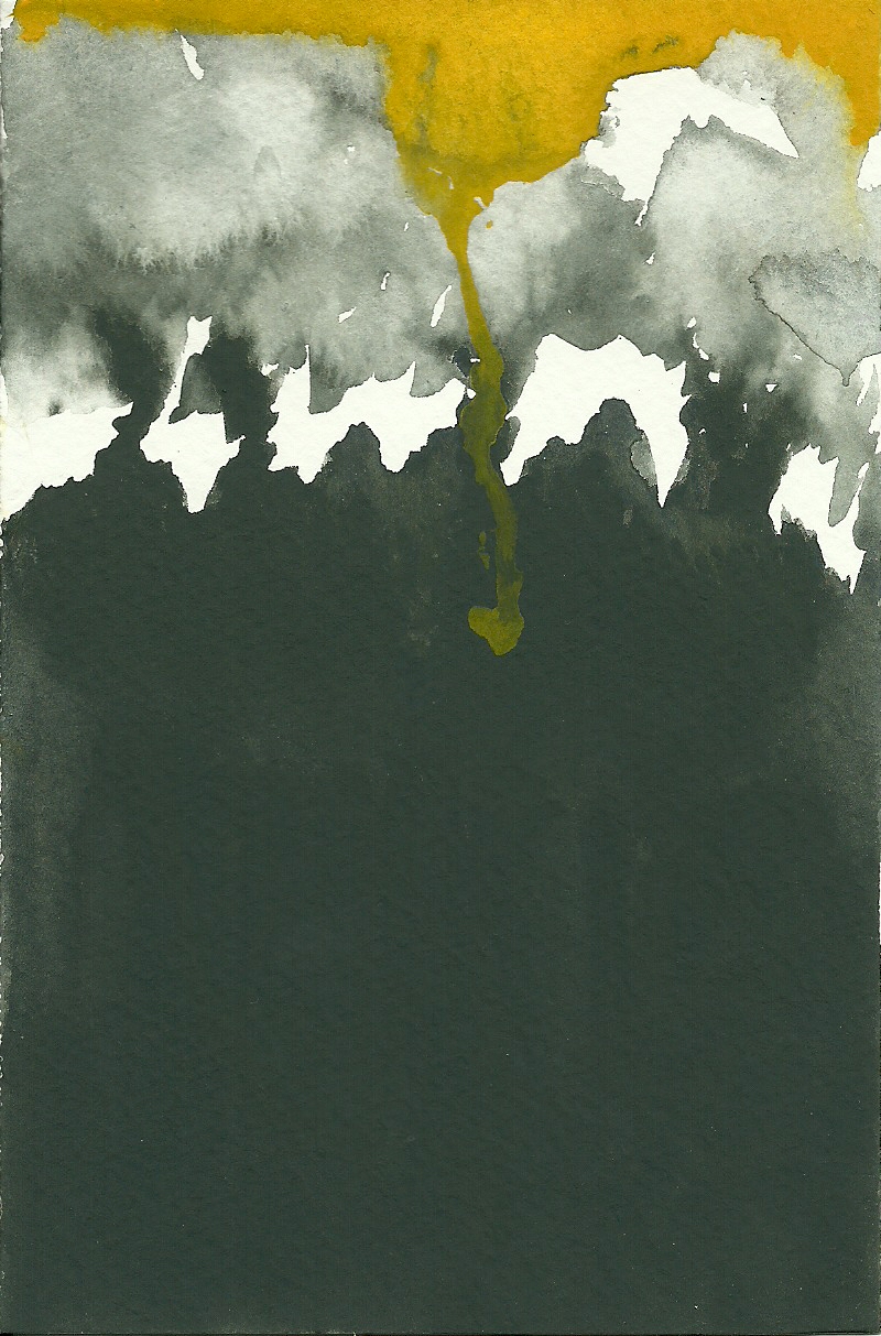 Today's was a practice in no intersections. I like how the vertical lines are a touch not perpendicular to the edge. Paynes's Gray and Cadmium Yellow.